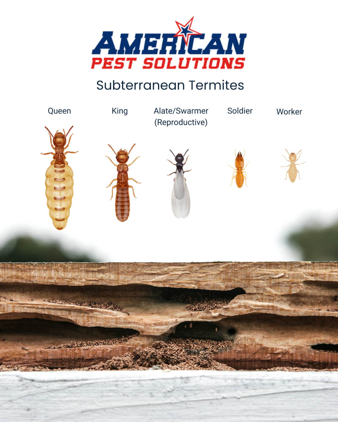 Reach out to American Pest Solutions to schedule an inspection and let our team help protect your home or business from costly termite damage.