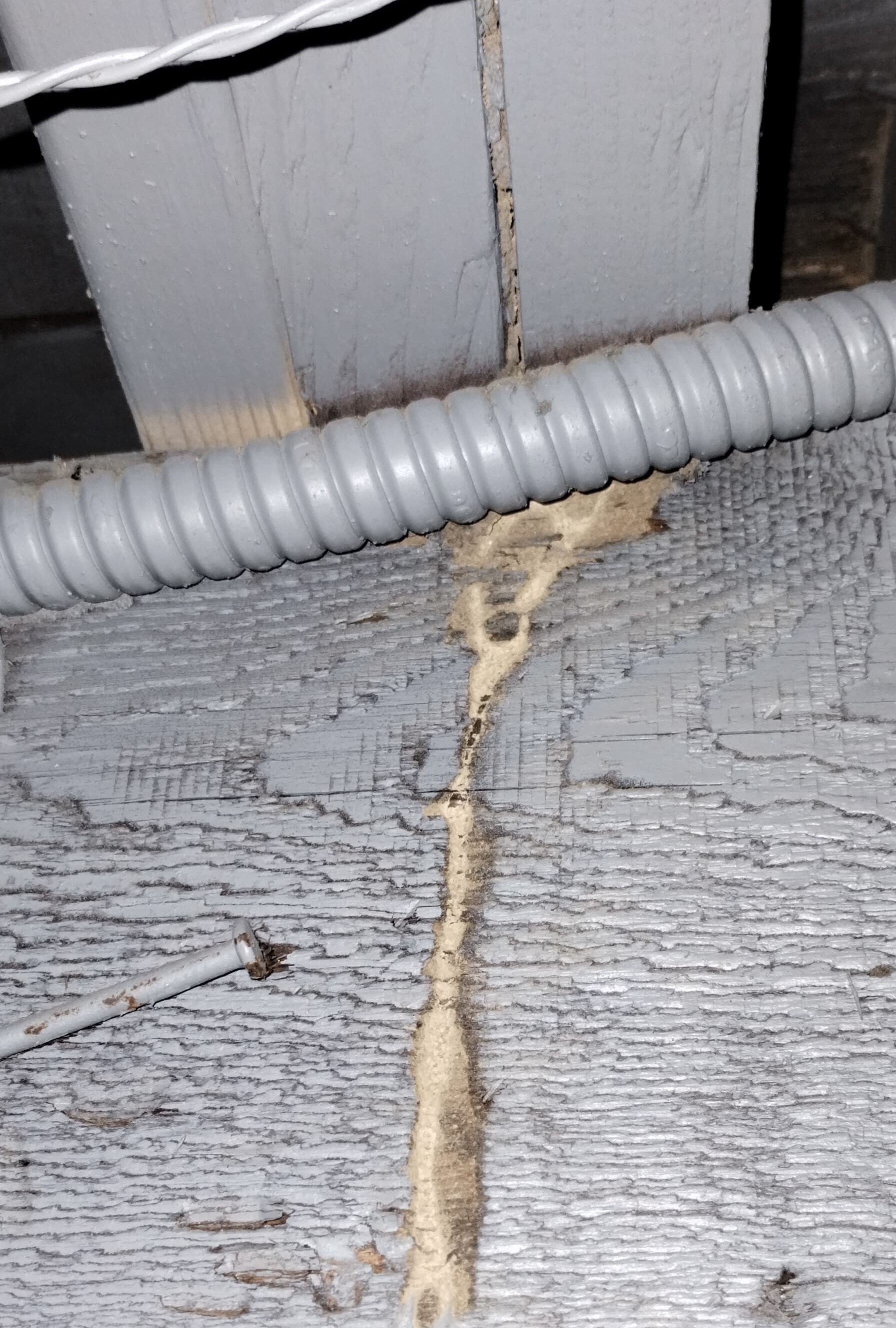 These pencil-width tubes may appear on foundation walls, basement surfaces, support posts, or other hard surfaces. Termites use them like covered highways to reach wood.